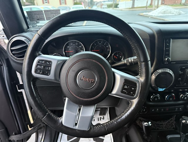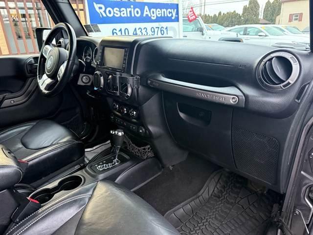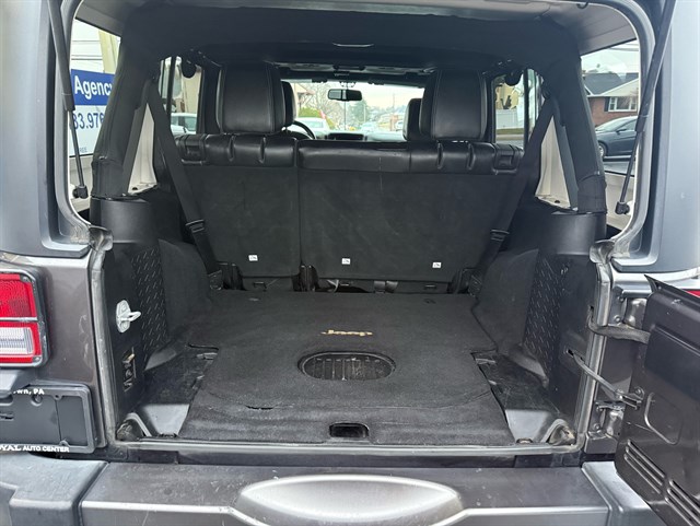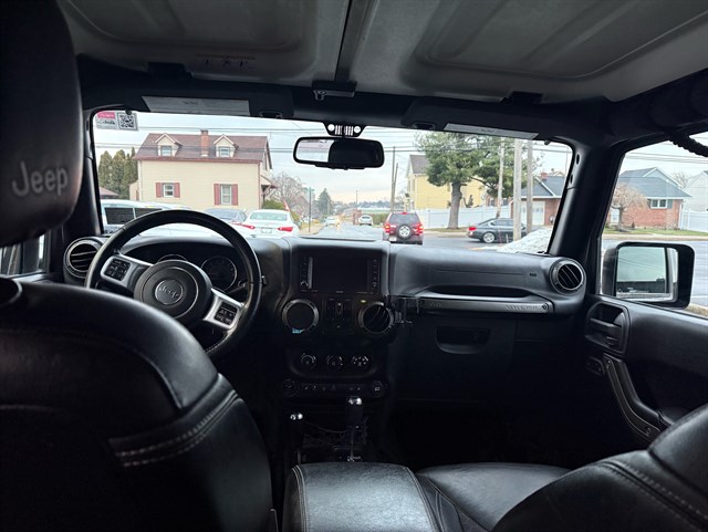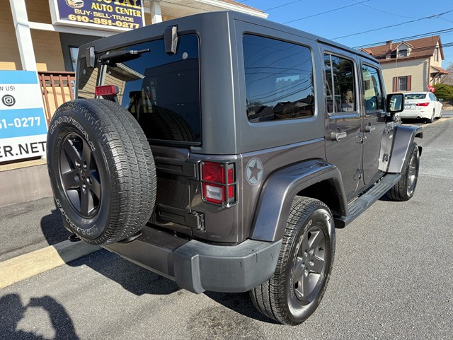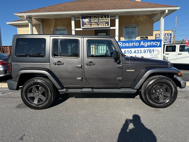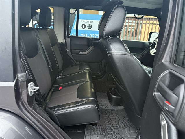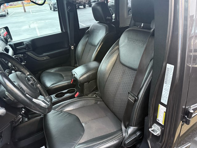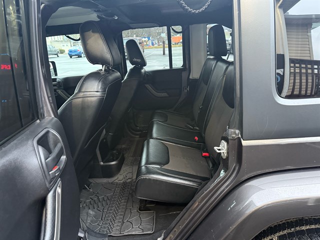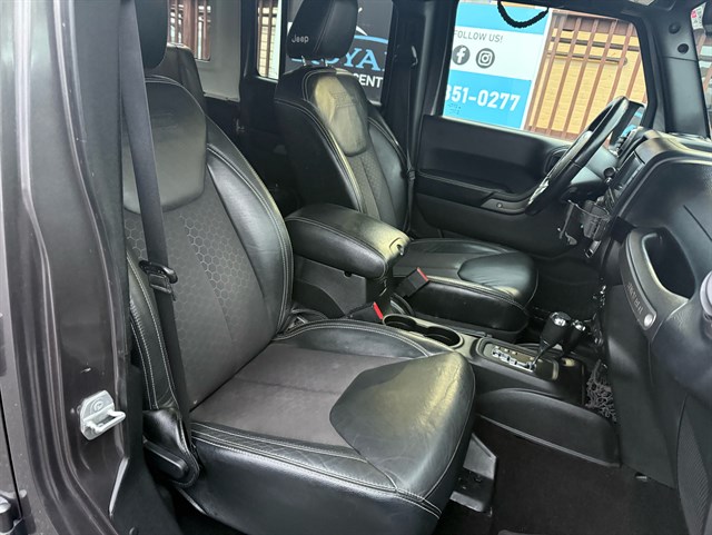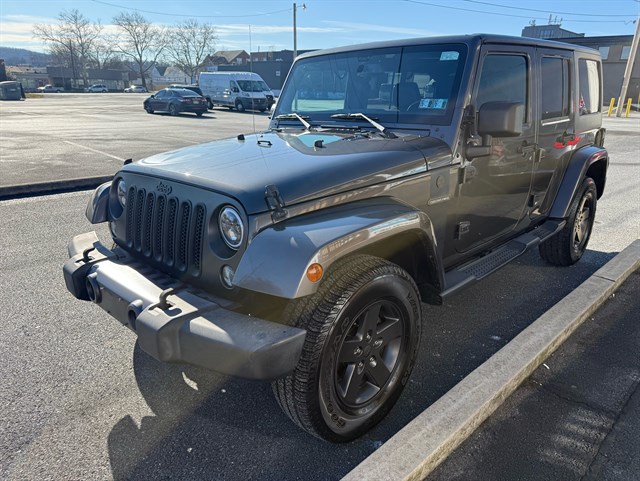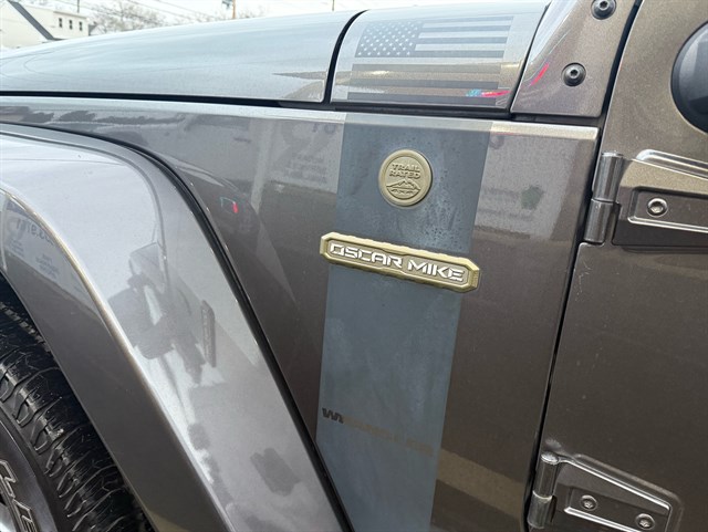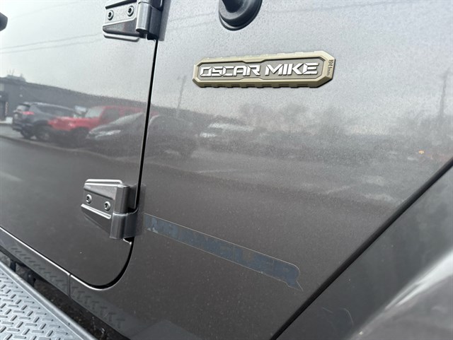 Up for sale is a beautiful 2016 Jeep Wrangler Unlimited Sport Oscar Mike Freedom Edition 4WD in Granite Crystal Metallic Clear Coat. The Oscar Mike Freedom Edition features a special package honoring the armed forces, featuring military-inspired styling with an American flag and "Oscar Mike" badges, a hood star decal, body-color flares, granite crystal accents, black fuel filler door, and taillamp guards. Also adds premium features such as heated seats, leather-trimmed seats with embroidered Oscar Mike logos, all-weather slush mats, upgraded audio, power convenience group, 17-inch Granite Crystal painted aluminum wheels, remote start, Alpine 9-Speaker System, Navigation, LED headlights, Heavy-duty front off-road bumper, tow hitch, and removable doors/hardtop. It has a clean title in hand and very clean inside and out. It was just serviced recently. Come check this out today!